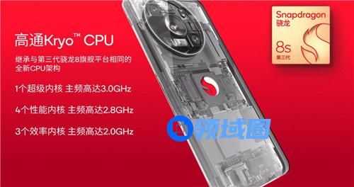 首先在基础的性能上,第三代骁龙8s移动平台搭载的仍然是高通Kryo CPU,继承与第三代骁龙8顶级旗舰平台相同的全新CPU架构,包含一个主频为3.0GHz的超级内核、4个主频高达2.8GHz的性能内核和3个主频为2.0GHz的效率内核, 对比第三代骁龙8在核心频率上自然有一定下降,但整体仍然是非常高的水平。