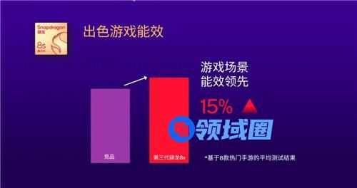 事实上,在GeekBench 6多线程跑分中,对比相同定位的竞品,第三代骁龙8s的CPU性能要领先20%,而在能效方面,基于8款热门手游的平均测试结果中,第三代骁龙8s的游戏场景能效表现也要比竞品高出15%。