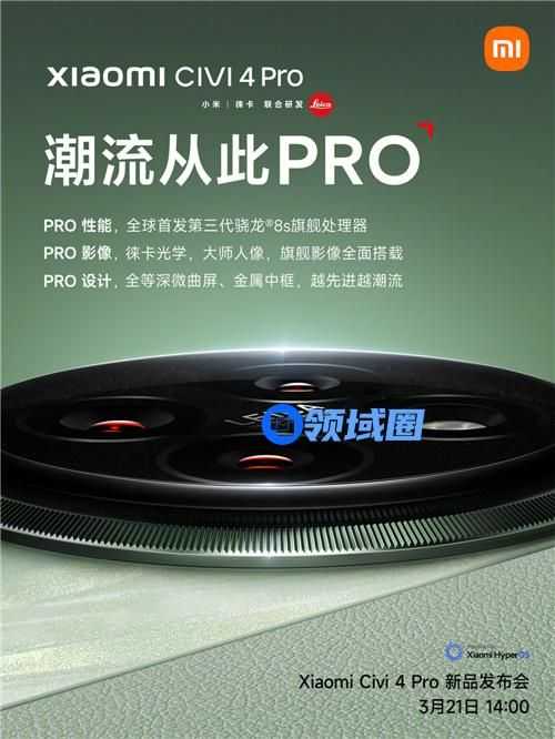 你们还别不信,据爆料,搭载这颗芯片的首发机型会是中高端档位的小米 Civi 4 Pro,主摄光影猎人 800、徕卡联名下放、除了等深微曲屏、金属边框外,它还有小长焦、大电池以及高速快充,光看到这些我已经馋了。。。