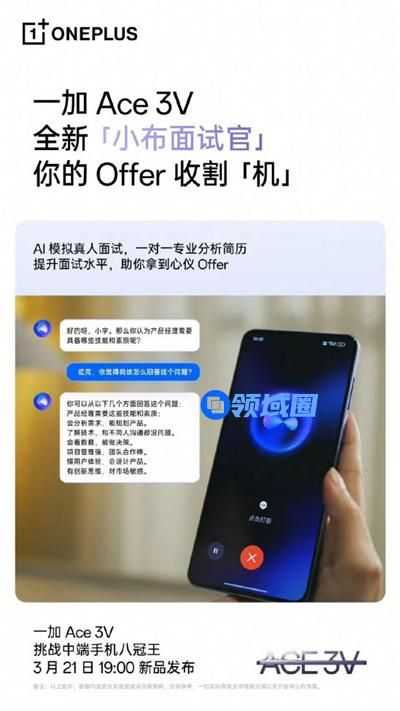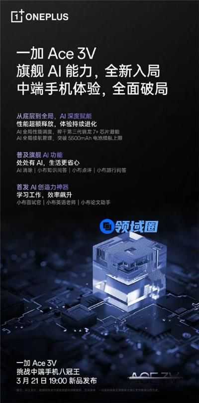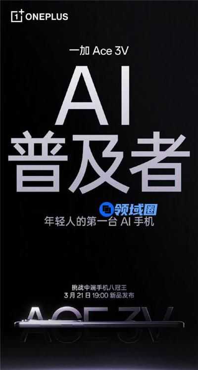 一加 Ace 3V 将于3月21日正式亮相。基于极致的硬件性能和全局AI 能力,一加 Ace 3V 不仅挑战中端手机「八冠王」,同时也是AI 普及者,带来前所未见的旗舰级产品体验。