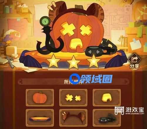 1、线索:我想要一盏有完整表情和展示台的南瓜灯,如果可以有丰富的装扮就好了!部件越多越好哦。