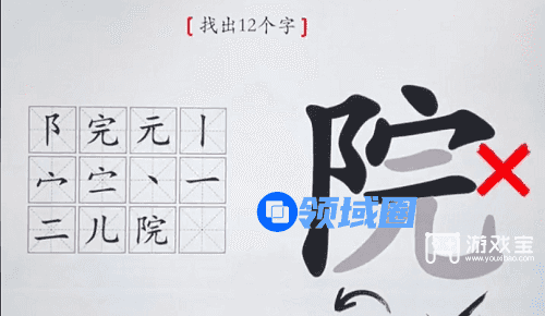 2、按照上面的顺序在院字上面依次写出对应的12个字以后就可以过关了。