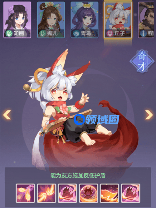 2、丘子(30级解锁):前期优质封印伙伴,可为友方施加反伤护盾。