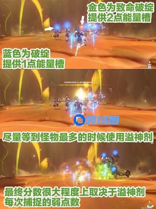 4、场上怪同时存在越多效率越高,取景框尽量包含所有怪,可以调整大小,所以尽量在怪多的时候站在视野开阔的地方,这样就能最大化时停超感捕捉弱点的效率。