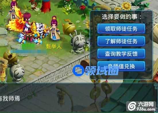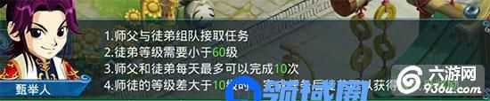 玩家一旦确定师徒关系,便可以在贾举人旁边的甄举人(50,155)处领取师徒任务: