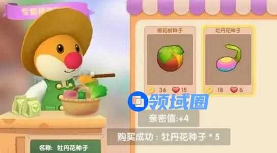 玩家通过购买到一些牡丹花种子,还可以获得一定的亲密度。