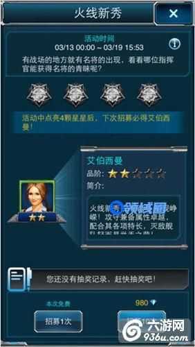 初步了解的是,在火线新秀活动中,有概率地点亮星星会获得一定量的神秘奖励,而当玩家人品爆发连亮四星之后,那么下次招募必得全新名将艾伯西曼!在此,容小编做一个小小的猜测,究竟拥有五星潜力的将领,是否只有她一个呢?马瑞娜也想晋升五星嘛!!!