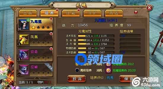 3、如果出现白色品质培养不满意,可以选择放弃,放弃不消耗培养次数,但消耗元魂培养丹,如果你想要只完美的元魂,就多准备培养丹;