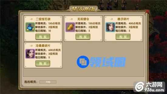 此外,帮派系统中还有帮派商店,可以购买你所需要的宝石、彪令甚至是美人。