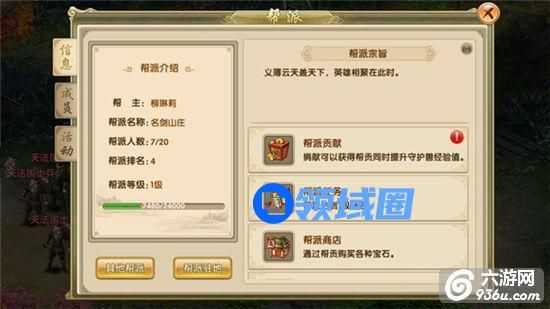 进入帮派以后,可以看到帮派的各种信息,包括帮主、帮派排名和帮派等级等信息,还可以参与帮派捐献哟!