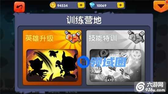 《传奇联萌》中的训练营地,包括英雄升级和技能特训两个大副本。
