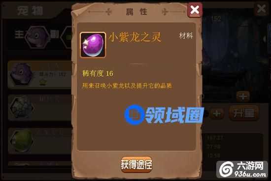 宠物升级按钮点击之后出现该宠物碎片的获得途径。