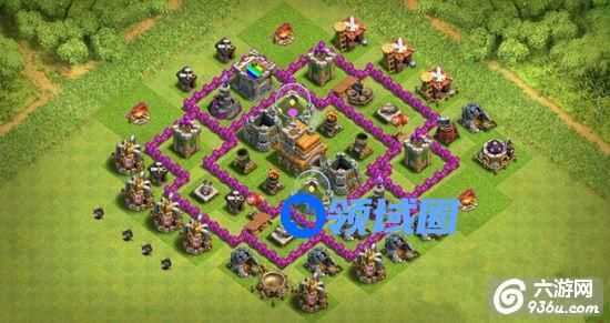 我们来看看这个阵,变形的回形阵,六本最高兵种也就是胖子了,不管胖子从哪些走都能触发陷阱,还想到中心推平大本,别忘了还有两个加农炮在等你呢。