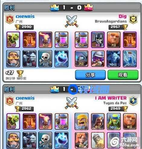 面对3000杯左右的基本是10级对手,我们卡牌等级低不可能攻下2塔,先保证守住才是胜利的第一步。