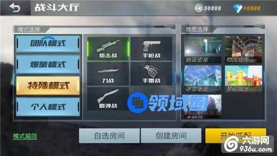 进入【战斗大厅】即可选择模式创建房间开始与其他玩家的激情枪战。