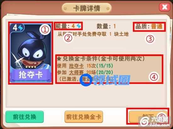 显示了这张卡目前的品质(普通,黄金)。普通卡可以在一场游戏内使用一次,而黄金卡牌则可以使用两次。