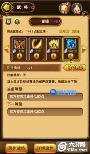 乱世枭雄:被动技能,降低地方目标的物理攻击。