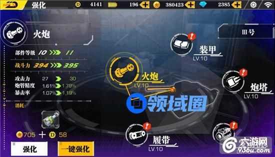 坦克的强化可分为三个部分,对相关零件的直接强化、对坦克增加涂装以及更换更高等级的强力技能,其中,零件强化是最主要最明显的坦克战力属性提升方式了。