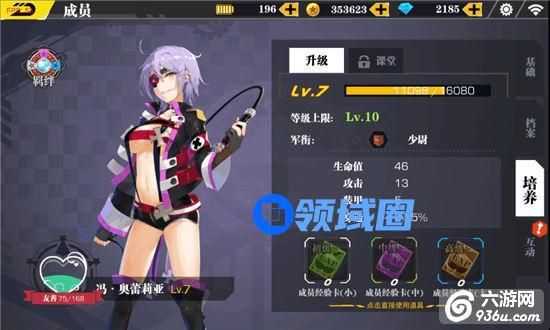 进入方法与上面类似,在游戏主界面点击【成员】,然后点击【培养】,即可来到上图的培养升级界面。成员的升级需要消耗成员经验卡,在界面直接点击各经验卡即可使用。升级不仅可以提升加成属性,满级后还可以晋升军衔,解锁成员专属技能,在特定玩法中发挥重要作用。