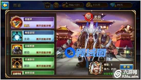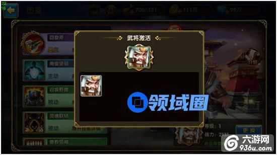 激活后武将对应的信息界面,会显示用于激活的武将的战力相关信息,可以点击更换按钮更换用于激活的武将,点击对应的武将头像还可以对该武将进行升级、进阶、穿戴装备和魂石、升级技能等操作来提高用于激活的武将战力。