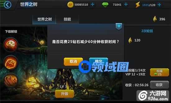玩家可以通过消耗钻石来进行祝福,钻石消耗量随着祝福次数而递增。祝福可缩短世界之树成长的时间,每天祝福次数有限制为24次。