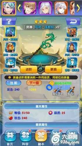 达成一定的条件(装备强化等级、一定量的金币、进阶素材装备)可以进行装备进阶,进阶完成的后的装备会大幅提升基础属性,一件装备最多可以进行10次进阶,紫色及以上的装备才可以进行装备进阶。装备进阶是提升战斗力的重要手段,品级越高的装备,进阶后实力提升越大!