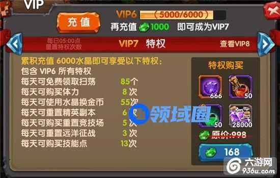开通VIP的话,还可以获取大量的水晶,不同等级的VIP,拥有的优势就是会越大。拥有的资源越多,你的选择性也会越大(可以培养自己喜欢的英雄或者宝宝,不用为资源而烦恼,也能让自己玩的更开心点)