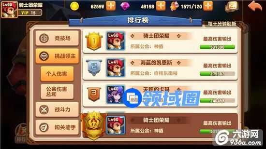 通过排行榜可以看到自己挑战领主的最高伤害以及排名信息。