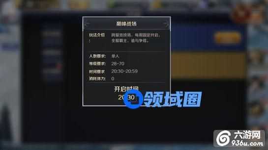 1、巅峰战场每天晚上8:30固定时间开启,总时长30分钟