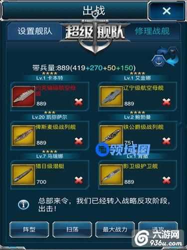 那么具体应该怎么放呢?(设置舰队右上为第一位置)。第一位置放航母,第二位置放航母,第三位置放战列舰,第四位置放金色的舰船(没有金色的话就随意放吧!),第五位置护卫舰,第六位置潜艇这样的话所有BUFF都有了,打关卡和海域都很轻松损失也少,一波流直接带走。