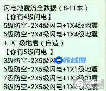 8到11本用到的闪电和地震也很常见,下面就是给大家介绍的8到11本的闪电和地震对应不同等级防空时所需要的数量了。