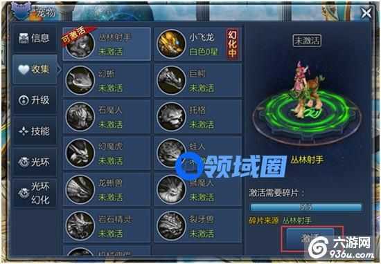1、点击收集进入宠物收集界面,宠物的碎片收集完毕之后,即可进行激活对应的宠物