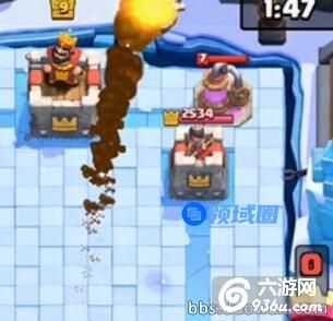 如下图,这种靠近公主塔的位置是一箭双雕,果断轰!就算采集器放到国王塔前面,也不要吝啬我们的火箭。