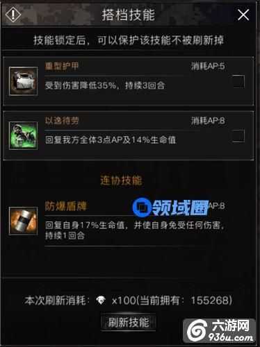 连协技能:防爆盾牌(回复自身生命,并使自身免收任何伤害)