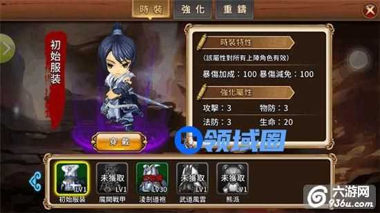 初始服装:暴伤加成100 暴伤减免100(初始拥有,不能强化和重铸)。
