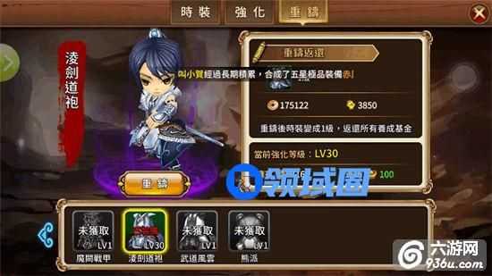 所有经过强化后的“时装”都可以使用“重铸”功能重生,重铸后“时装”变成1级,并返还所有的强化养成材料。