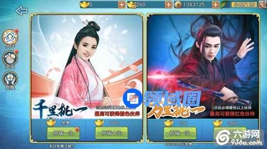 伙伴招募需要花费元宝,游戏内每天有5次免费的千里挑一机会,同时也可以从万里挑一从获得更好更强力的伙伴,如果抽取了重复的伙伴,系统将会自动转换为相应的碎片。