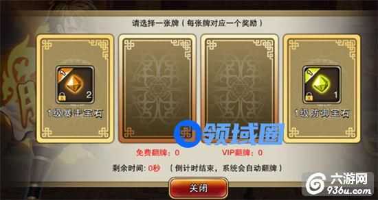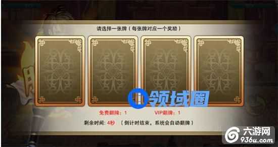 决斗结束后可进行翻牌获得奖励,VIP可额外获得一次翻牌机会;