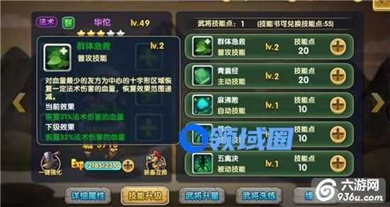 2、结合许多玩家智慧,在技能加点的时候建议不给技能3加点,这样华佗上阵时就不用进行相应输出,集中精力完成自身的续航任务。
