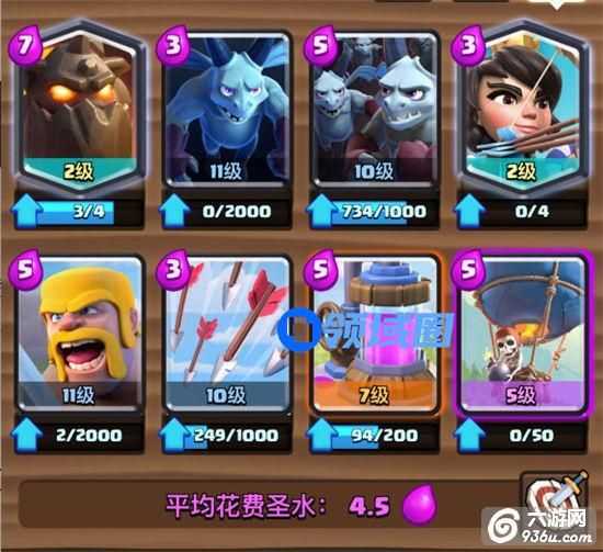 卡组4.5费,不过核心都需要后置并且有采集器续航并不需要担心圣水不够的情况发生,本赛季升级完黄毛和小苍蝇目前最高打到3699,应该还可以上一点分,看运气,毕竟现在环境你们懂的。