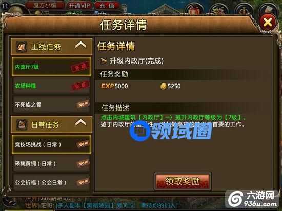 游戏中的主线任务是最为重要的任务,不仅可以帮助玩家更快的了解游戏,在游戏中快速的成长起来,在完成主线任务的同时可以获得大量奖励,各种对于玩家很有帮助的物品以及经验、金币等。当然每个主线任务只能完成一次。其它的部分任务可以循环做,比如说日常任务,每天一次,还有个别活动任务可以循环做。