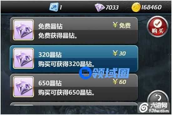 三、选择所需购买的晶钻并点击右上角“购买”按钮