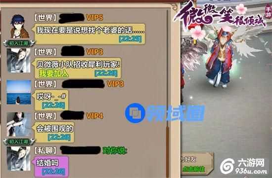 首先,作为一款恋爱武侠手游,在游戏中一定少不了与美女们聊天。世界聊天是撩妹最基础的一个步骤,等级达到15级后,各位玩家就会开启世界聊天功能,风趣幽默的谈吐才能更好的吸引到游戏中的美女们。此外,各位男玩家一定要多多留意世界聊天中那些总发言的妹子,把握机会,接住话题,你就迈出了撩妹第一步!
