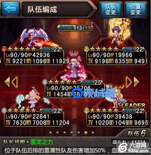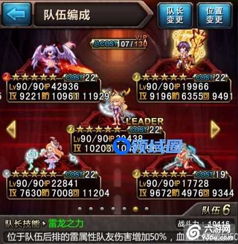 战神伊露(队长)+战神莉萝艾+神使友美+巫师隆音(后排)+雷光剑姬(后排)