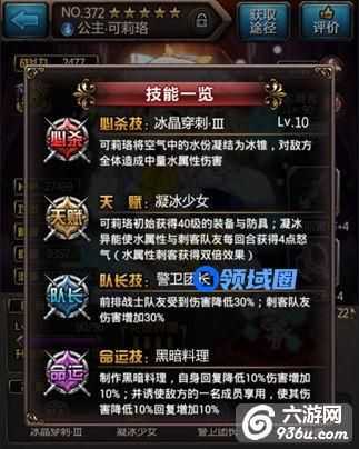 天赋:可莉珞初始获得40级的装备与防具;凝冰异能加速能量转换,水属性与刺客队友每回合获得4点怒气(水属性刺客获得双倍效果)。从技能介绍来看,可莉珞无疑是冷砂的好姐妹。这2位水属性刺客的必杀可谓相辅相成。冷砂作为必杀阻击血量最少的2位成员,而可莉珞则是全场AOE伤害,作为刺客来说在传统观念来说必杀的必要性放到了最后的位置。但是可莉珞这样的天赋出现,加快了刺客,尤其是水属性刺客的必杀清场。对于目前地位尴尬的影舞者也有间接的提升哦!影舞者给予刺客一定的生存能力,无论任何时候的受击率都有着庇护,让必杀出手更有信心。