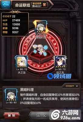 命运技,黑暗料理:自身回复降低10%,伤害增加10%。对方伤害降低10%,回复增加10%。作为己方的buff和随机地方的debuff,伤害增加和回复减少对于刺客来说是非常值得的替换。可莉珞的命运技能可以增加自己10%伤害,对于高攻刺客来说提升效果拔群。并且还能随机使一名对手降低10%伤害但回复增加10%。在PVE对阵单个BOSS时可以稳定降低BOSS的输出,提升队伍的生存能力。而在PVP战斗中若是诱使对面的DPS角色食用黑暗料理那就是极好的!