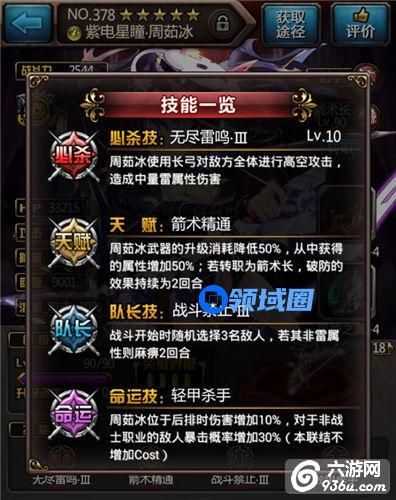 周茹冰有着能对全体敌人造成雷属性伤害的必杀技,武器升级消耗同比降低50%,获得属性增加50%,这也就说明了为何周茹冰作为一张签到卡,却拥有了大师卡的属性技能。当周茹冰转职为箭术长,破防效果能持续两个回合,使其更适合集火目标。