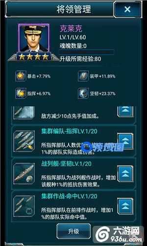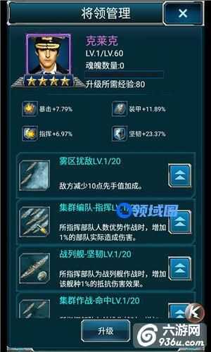艰难的把眼光从wuli克莱克的脸上挪下来的小编我目测了一下,男神的一级属性加成就有暴击+7.79%,装甲+11.89%,指挥+6.97,坚韧+23.37%,果然不愧是4星将领,自身属性加成杠杠的,而且每升一级,男神的加成都会显著上升哦!