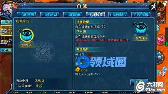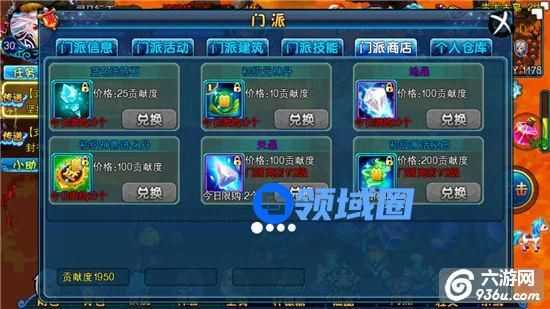 通过门派任务和门派捐献能获得门派贡献,在建设帮会的同时也可以用来学习门派技能和购买门派商店中的超值物品。门派技能的重要不必多说,在游戏中掉率极低的珍惜材料都能在门派商店买到。所以门派任务都要做,金币捐献最好完成,元宝捐献可以量力而行。