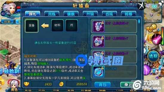强大的装备需要仙友精心锻造,如在“轩辕鼎”中洗练可以激活和刷新装备属性,根据装备颜色不同所刷出的技能数和技能等级也不一样,轩辕鼎的强化也是提高战斗力的有效方法(前期装备强化至7-8星即可),装备还可以通过镶嵌宝石来提高战斗力,经过强化、洗炼、镶嵌的装备才是完整的装备。神兽和坐骑异曲同工,可以通过培养元神、转生进化技能等方面提高战斗力。仙器和技能也是提升战斗力的重要手段,仙器“仙翼”、法宝的提升让你真正如虎添翼,职业技能、门派技能、神兽技能是战斗力的直接体现,同一个技能不同的伤害,战斗力高下立判!